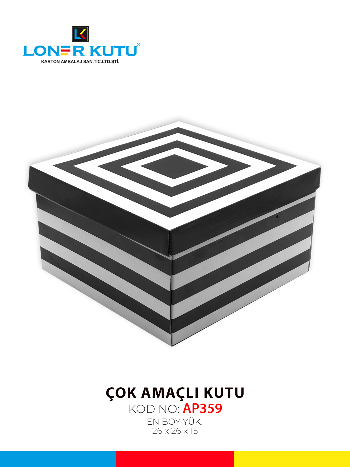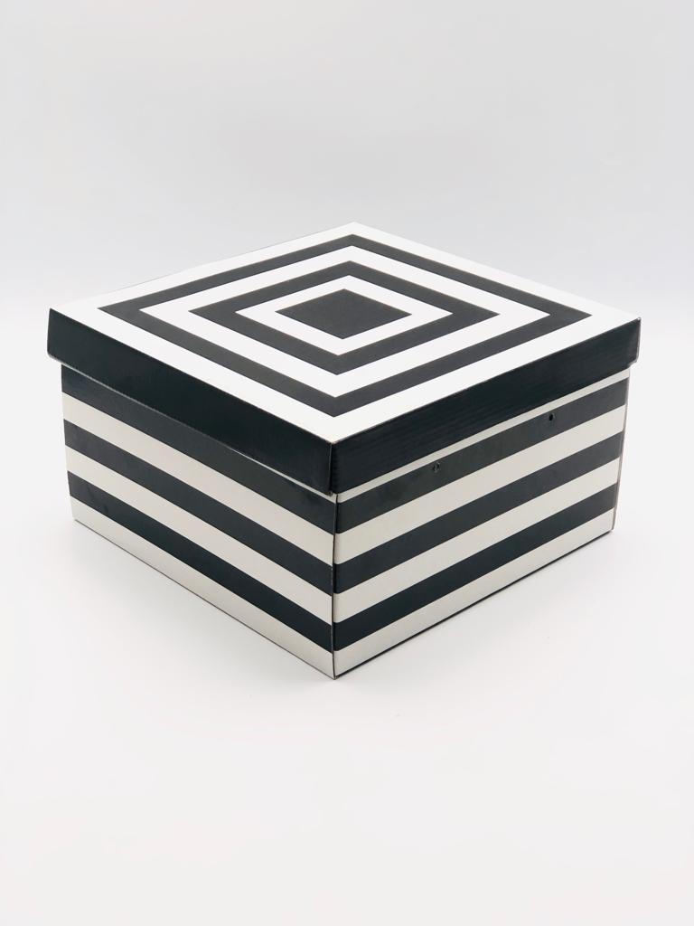 26x26x15 Siyah Çizgili - Çizgili Kapaklı Kutu