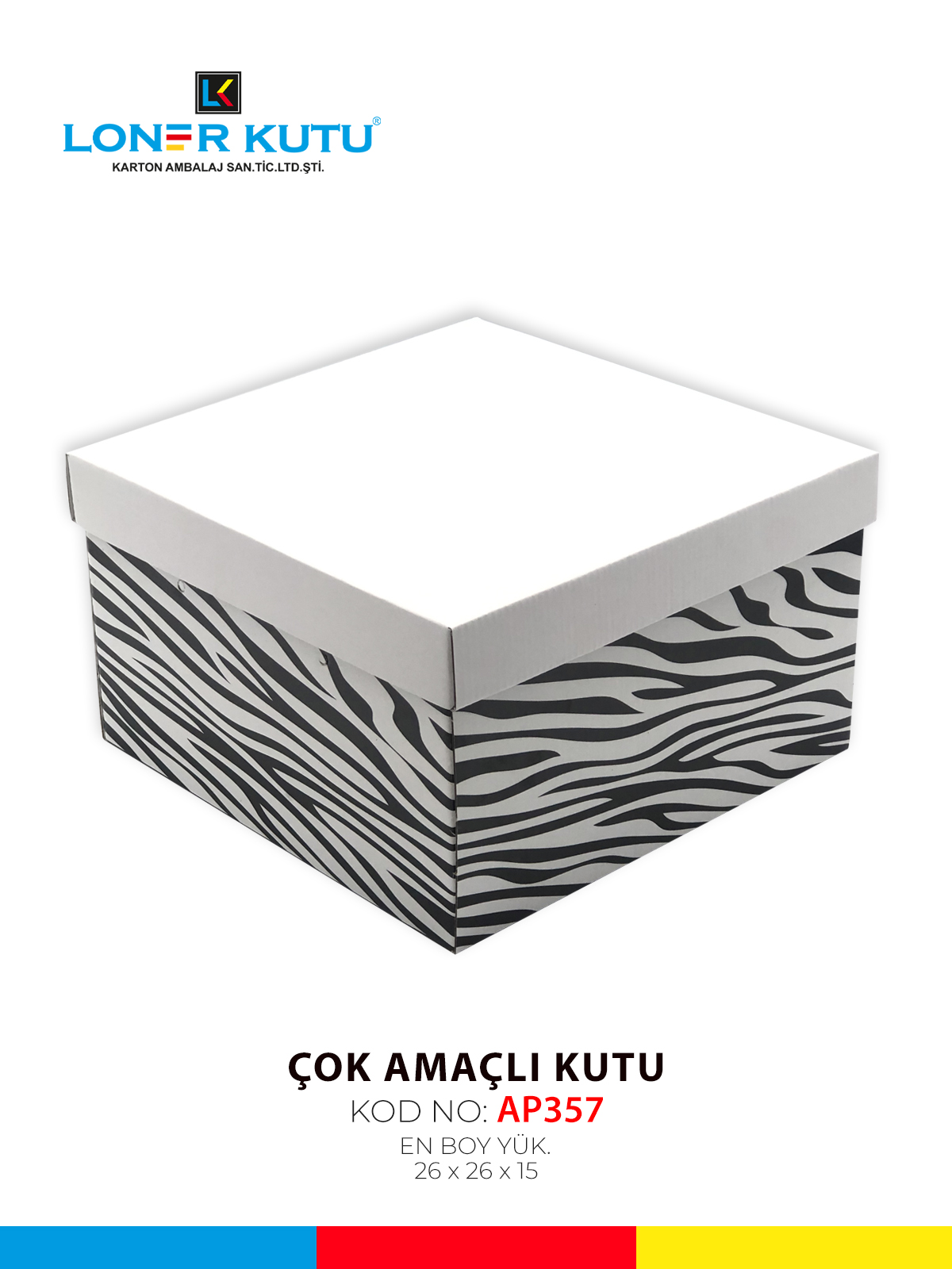 26x26x15 Siyah Desenli - Beyaz Kapaklı Kutu
