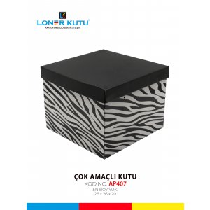 26x26x20 Siyah Desenli - Siyah Kapaklı Kutu