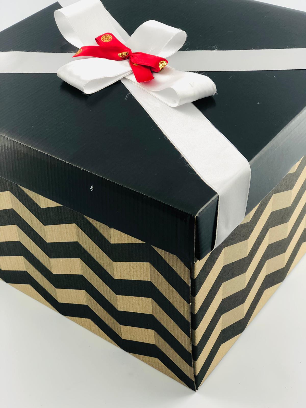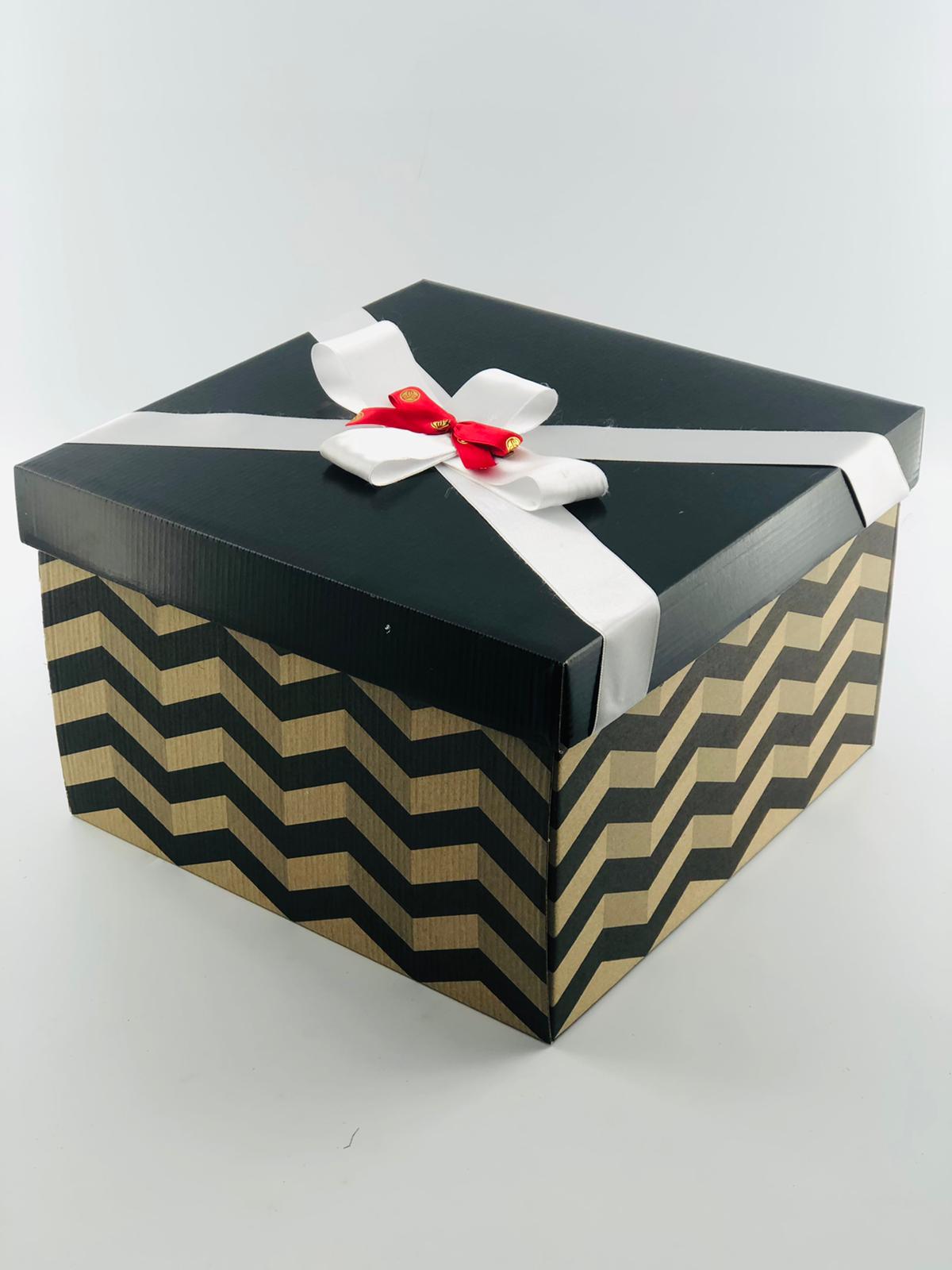 31x31x20 Kraft Siyah Desenli - Siyah Kapaklı Kutu