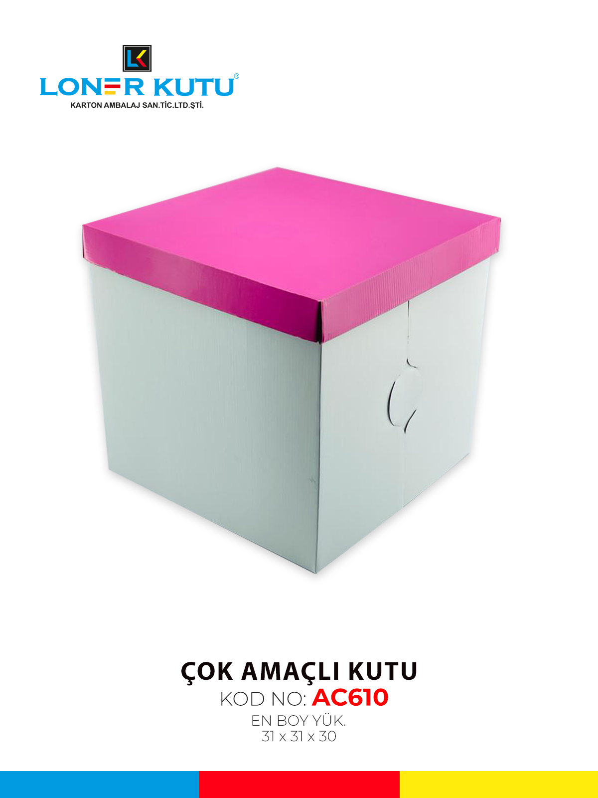 31x31x30 Beyaz - Pembe Kapaklı Kutu