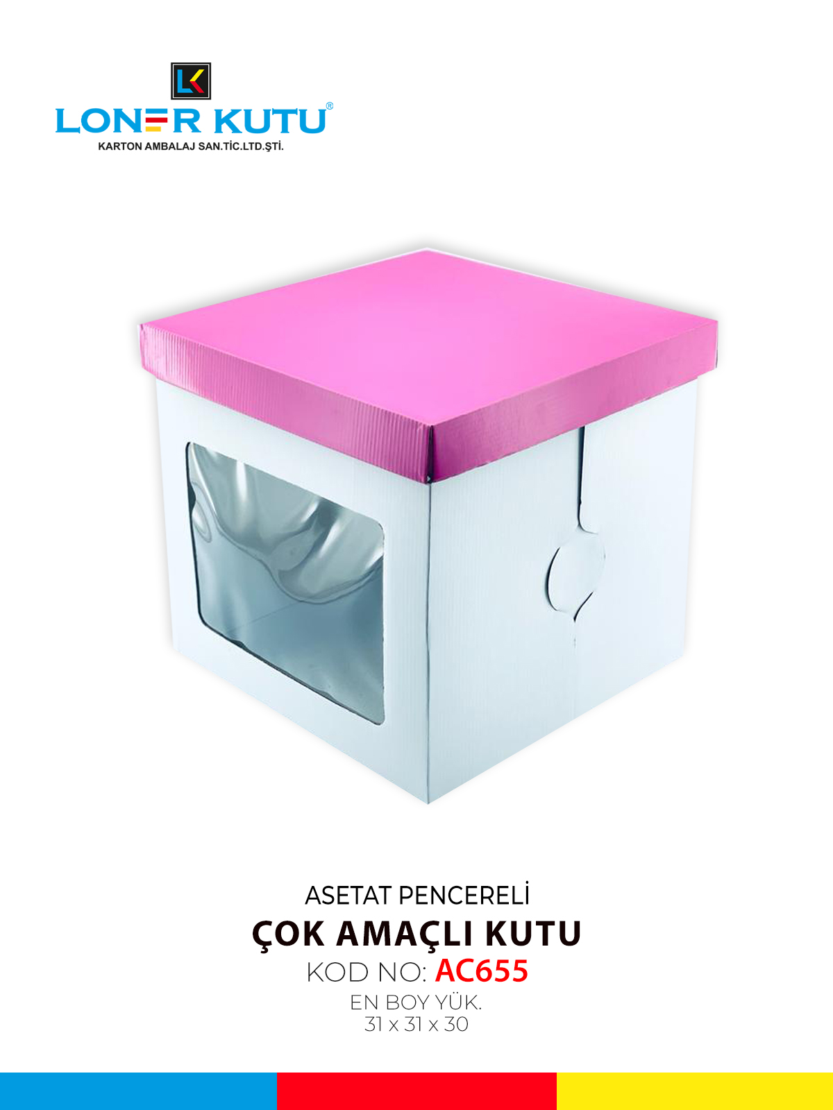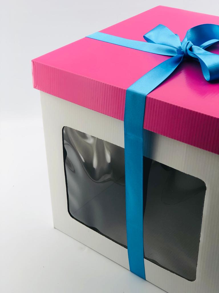 31x31x30 Pencereli Beyaz - Pembe Kapaklı Kutu
