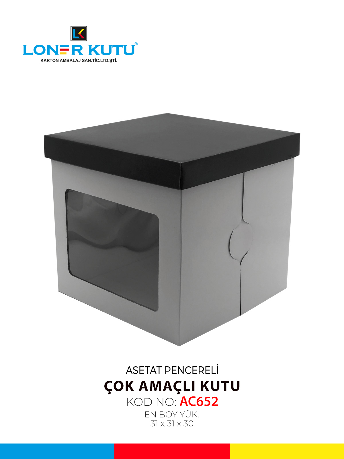 31x31x30 Pencereli Beyaz - Siyah Kapaklı Kutu