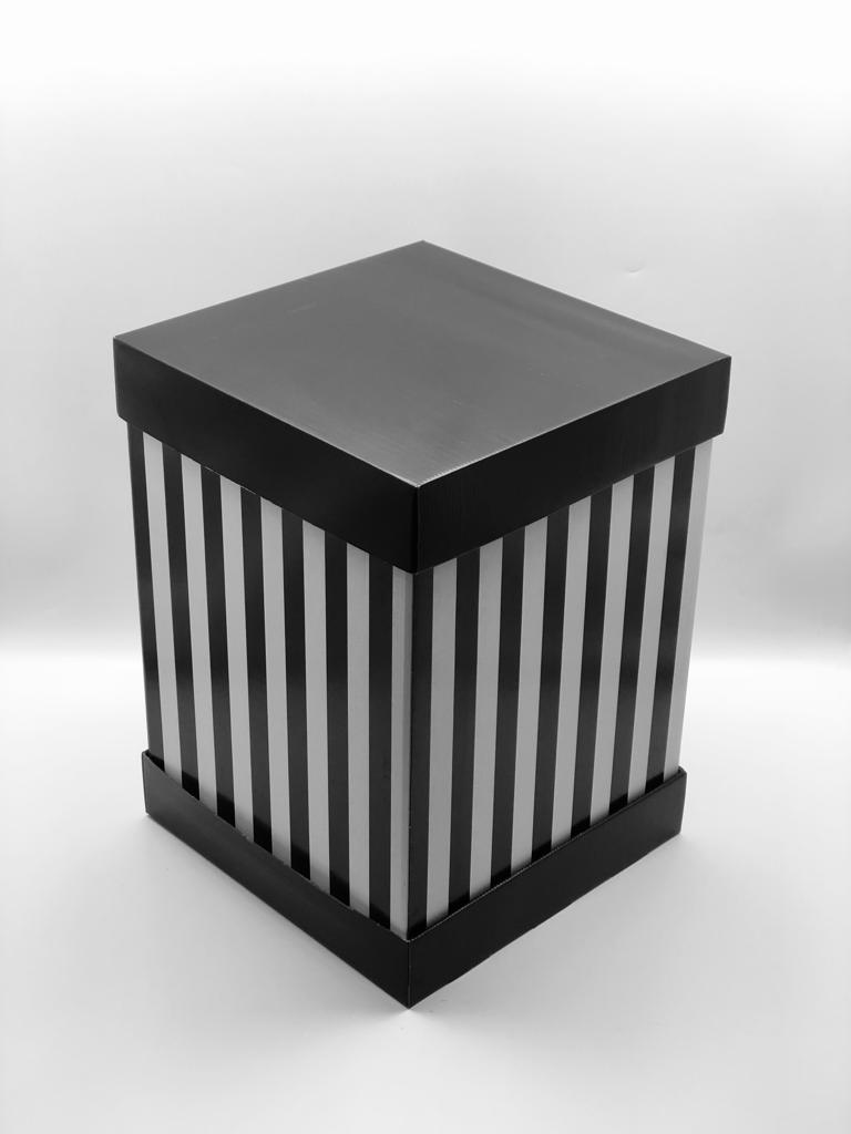 35x35x50 Siyah Çizgili - Siyah Kapaklı Pasta Kutusu